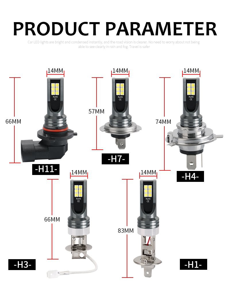 پرنور H4 H7 H1 H3 9006 12لامپ خودکار SMD 3030 12-24v برای چراغهای مه شکن LED موتور سیکلت اتومبیل